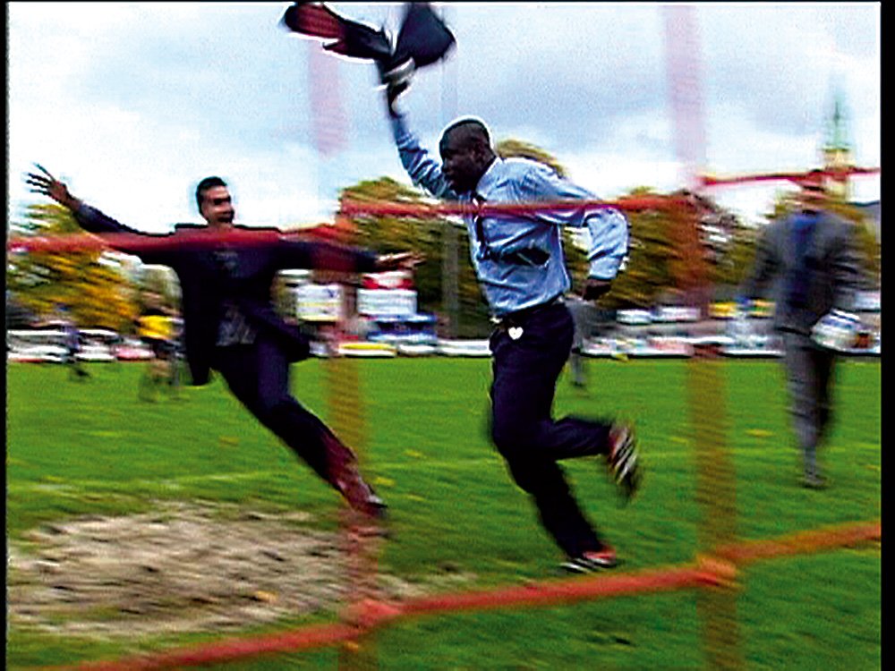 Strauss: Lüscher hat für diese Arbeit mit der Modemarke Trussardi zusammengearbeitet. In ihrer Videoarbeit sieht man die Fussballmannschaften Grasshoppers Zürich und FC St.Gallen in massgeschneiderten Manager-Anzügen beim Fussballspiel. Zunächst wird nur gespielt, plötzlich fliegt ein Laptop in Zeitlupe durch die Luft oder die Anzüge werden ausgezogen, ähnlich wie das Trikot bei einem Torjubel. Lüscher wirft mit der Arbeit Fragen zu Geld, Macht und Politik im Fussballkontext auf. Lüscher ist zwar kein Fussballfan, doch sie ist eine Künstlerin, die sich stark für mehrschichtige Themen interessiert. Und im Fussball ist das alles vorhanden.